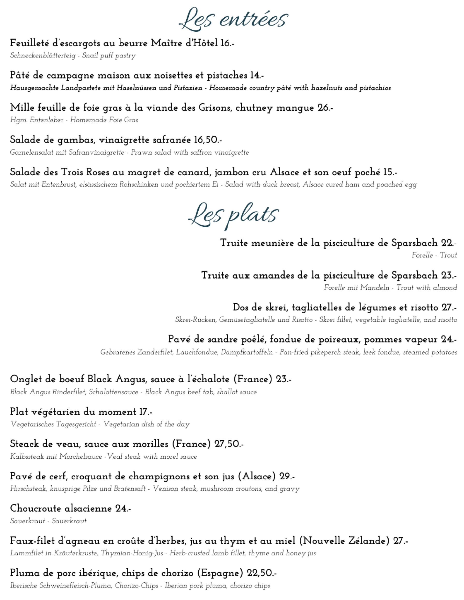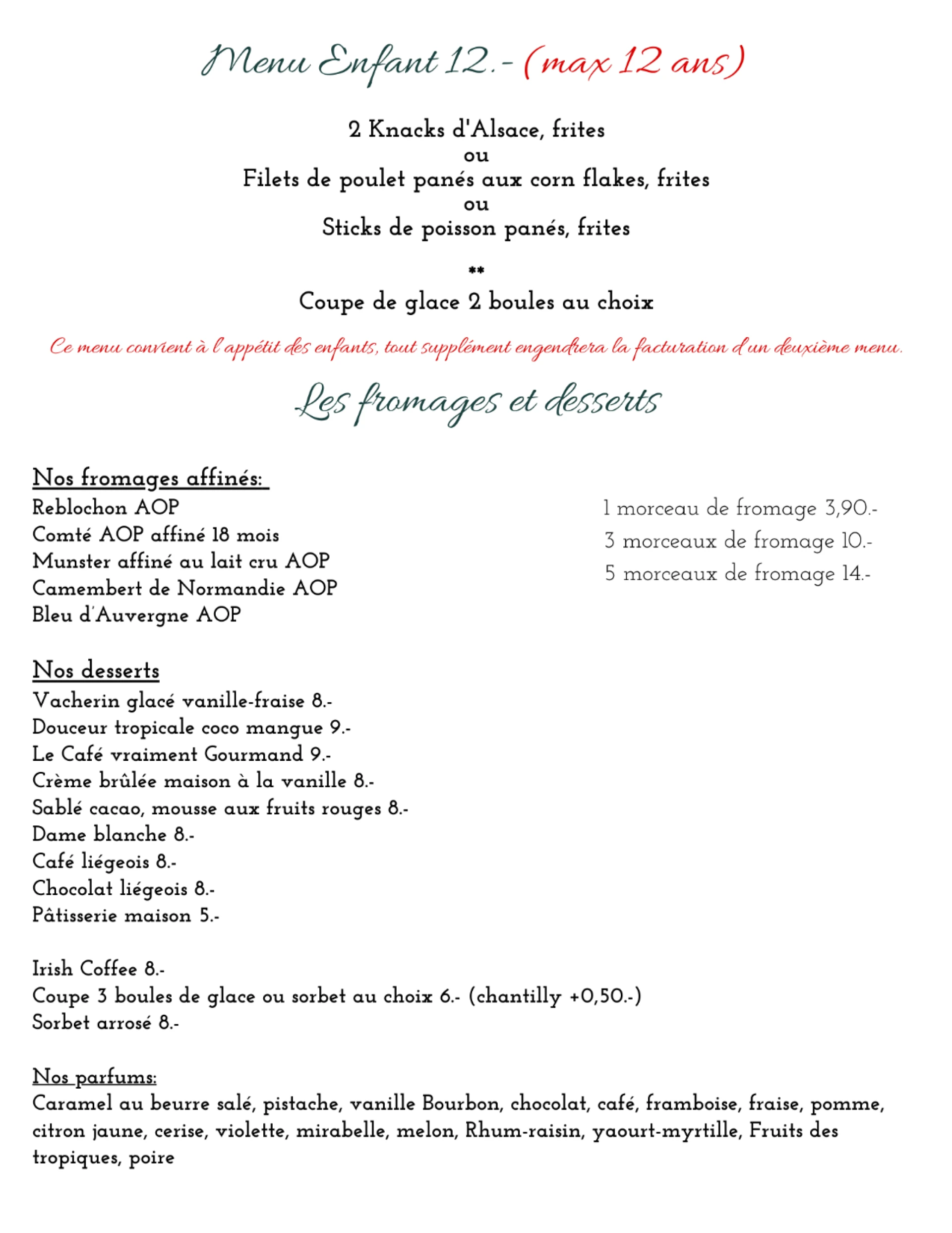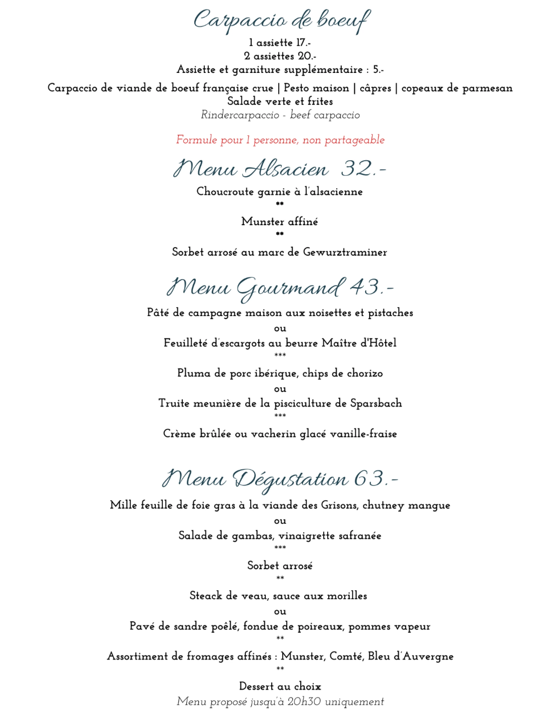 Carte du restaurant février 2026